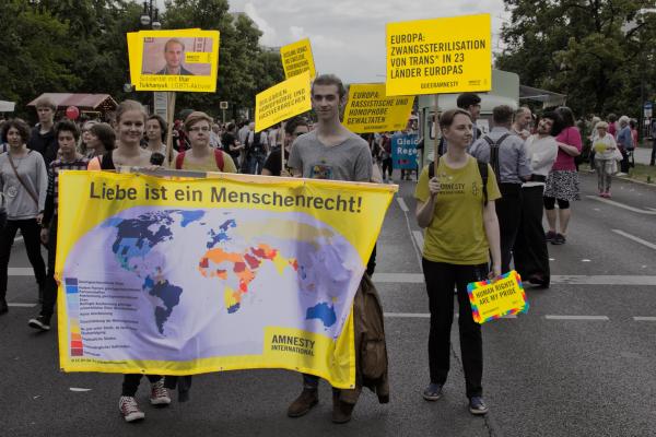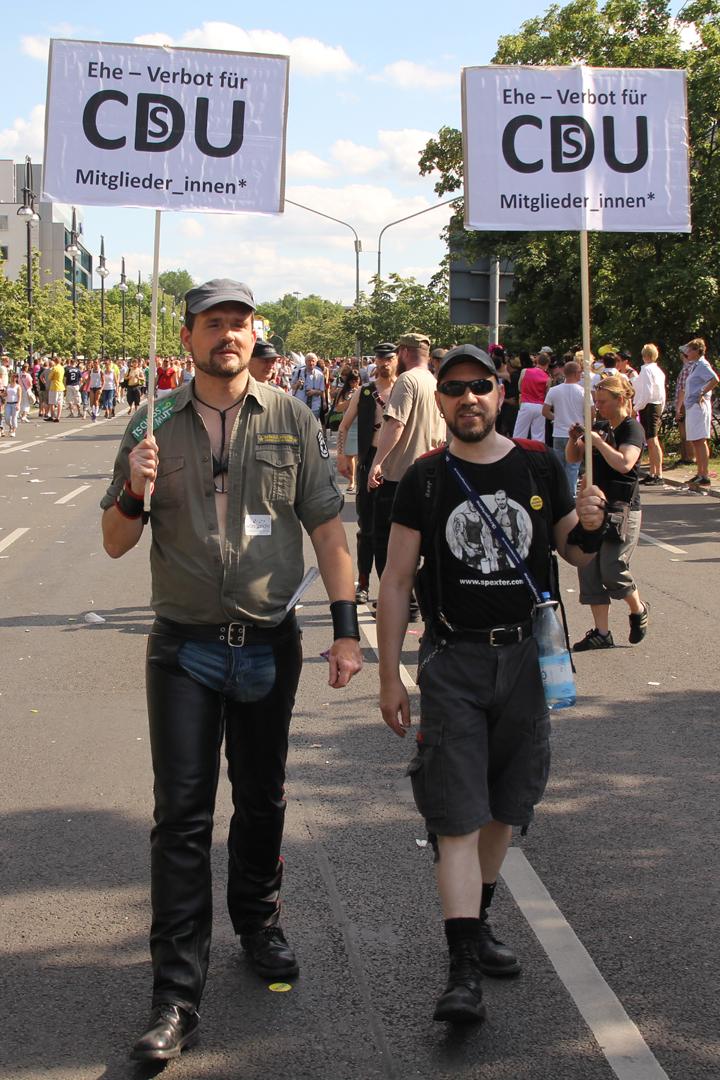 Ich wollte dem eigentlichen Grund des CSD Rechnung tragen. Deshalb habe ich die Fotos ausgewählt, die dokumentieren, dass Homosexualität in der Gesellschaft eben nicht überall akzeptiert wird. Gleiche Teilnehmer mit dem gleichen Schild beweisen zum Beispiel, dass auch im „offenen Berlin“ Schwule immer noch beleidigt und ausgegrenzt werden. Welche Probleme junge Menschen haben sich zu outen, kann man sich als Außenstehender nicht vorstellen. Bei der Bildauswahl habe ich versucht eine Auswahl von allen „Richtungen“ der Demonstrationen zu zeigen: Als erstes natürlich die politischen Anliegen des Zuges wie „Ehe für alle“ oder unter welchen Gefahren Schwule und Lesben in anderen Ländern leben. Ich zeige Schwule, Lesben, Transgender und einige sexuelle Ausrichtungen. Diese darzustellen ohne dass die Sache zur Freakshow wird, verletzend oder voyeuristisch wirkt, war eines der schwersten Dinge bei der Auswahl.